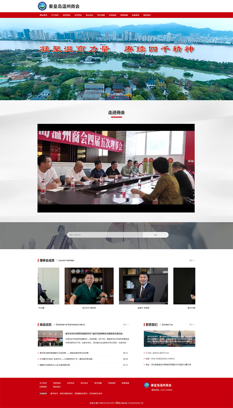 秦皇島溫州商會成立于2005年4月,是在秦皇島第一個注冊的異地商會,也是全國第126個異地溫州商會,商會是由溫州籍在秦皇島經(jīng)營的工商業(yè)者和其他各界溫州籍人士自愿組成的,經(jīng)市民政局核準(zhǔn)登記的具有法人資格的非營利性社團組織,現(xiàn)有會員150余名,理事會成員28名。會員涉及工業(yè)電器、工程建筑、通訊、烘焙、服裝、餐飲等行業(yè)。商會秘書處為辦事機構(gòu),下設(shè)財務(wù)部、宣傳部、會員部、接待部、維權(quán)部、市場部。