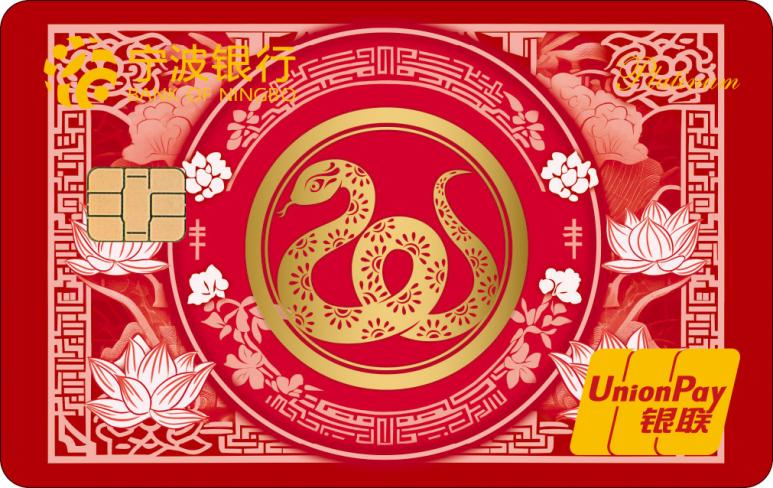 蛇年生肖白金卡是寧波銀行以“金蛇獻(xiàn)瑞,開卡有?!睘橹黝}在蛇年發(fā)行的白金借記卡,共推出“典雅版”和“萌趣版”兩款?!暗溲虐妗痹O(shè)計(jì)運(yùn)用中國傳統(tǒng)剪紙手法設(shè)計(jì),金色生肖蛇圖案盤繞在繁花似錦的蓮花中,透過花窗之美,盡顯活色生香的古色風(fēng)韻?!懊热ぐ妗币钥ㄍㄉ邽榛{(diào),三維立體的造型搭配春節(jié)喜慶色調(diào)以及元寶金幣的元素,象征著財(cái)富和收獲??ㄆ哂袃π?、轉(zhuǎn)賬結(jié)算、購物消費(fèi)、代收代付、個人理財(cái)、電話銀行等多種功能。